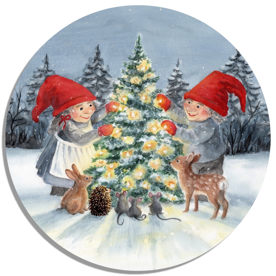 Coasters glass coasters 9,5 x  9,5 cm watercolor art print Denmark Danmark Scandinavia - Christmas Winter Jul Nisse