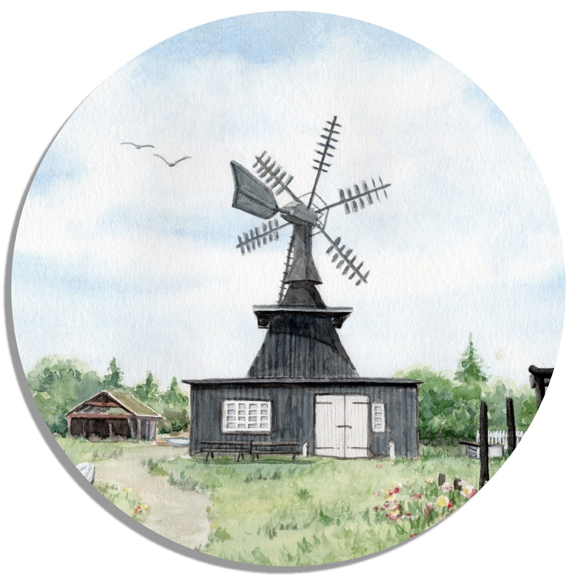 Coasters glass coasters 9,5 x  9,5 cm watercolor maritime art print art print  Denmark Danmark - Nymindegab Mill - DK85