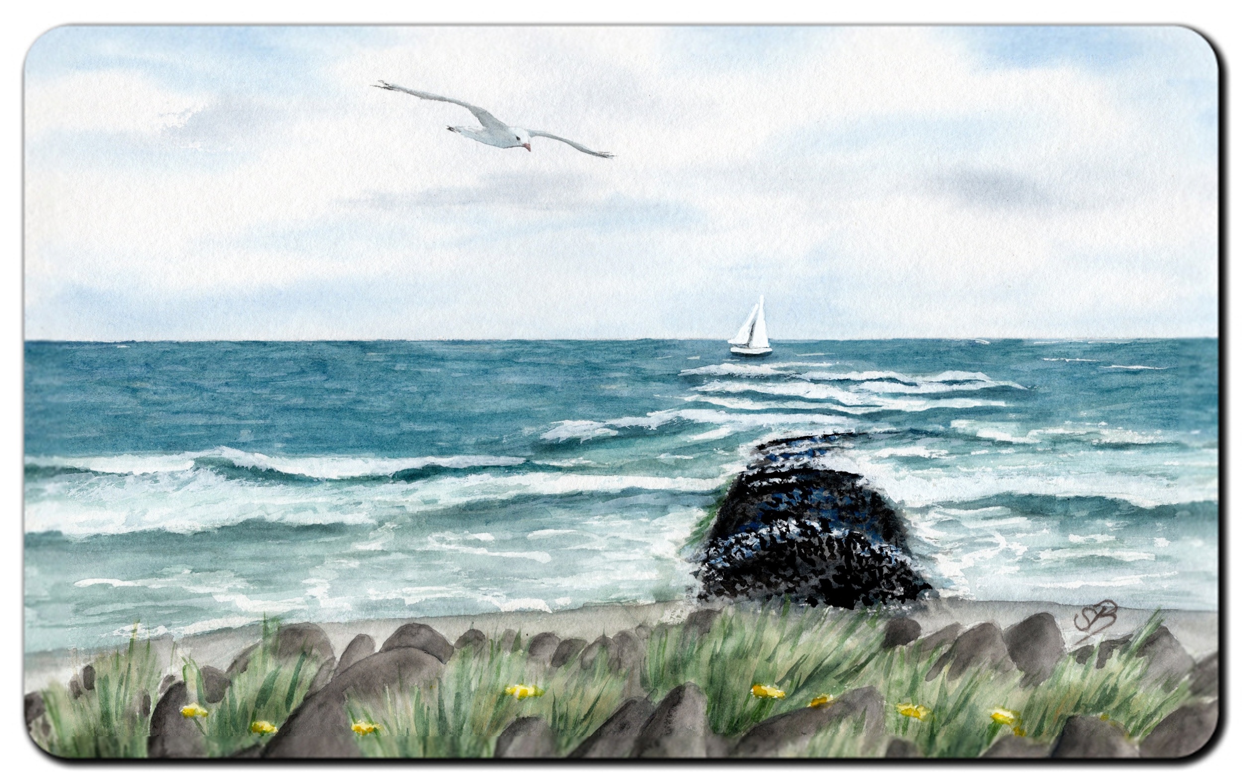 Frühstücksbrettchen Brettchen  Aquarell Maritim Kunst Druck Kunstdruck Nordsee Insel Baltrum Strand Dünen Meer