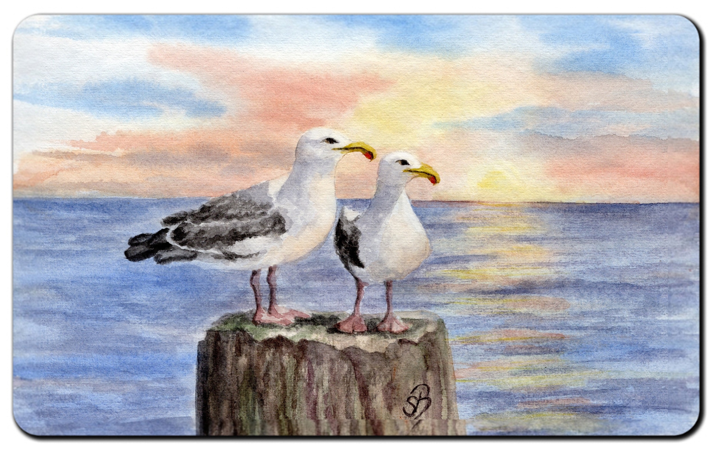 Frühstücksbrettchen - Möwen auf Pfahl im Sonnenuntergang - AL3