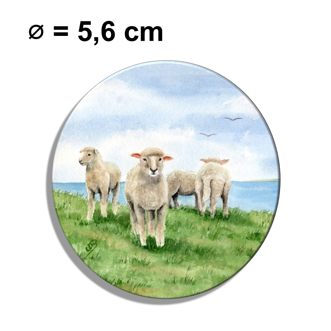 Kühlschrankmagnet m. Flaschenöffner Aquarell Maritim Kunst Druck Kunstdruck Nordsee Ostsee Schafe Schaf Deich Ostfriesland Deichschafe