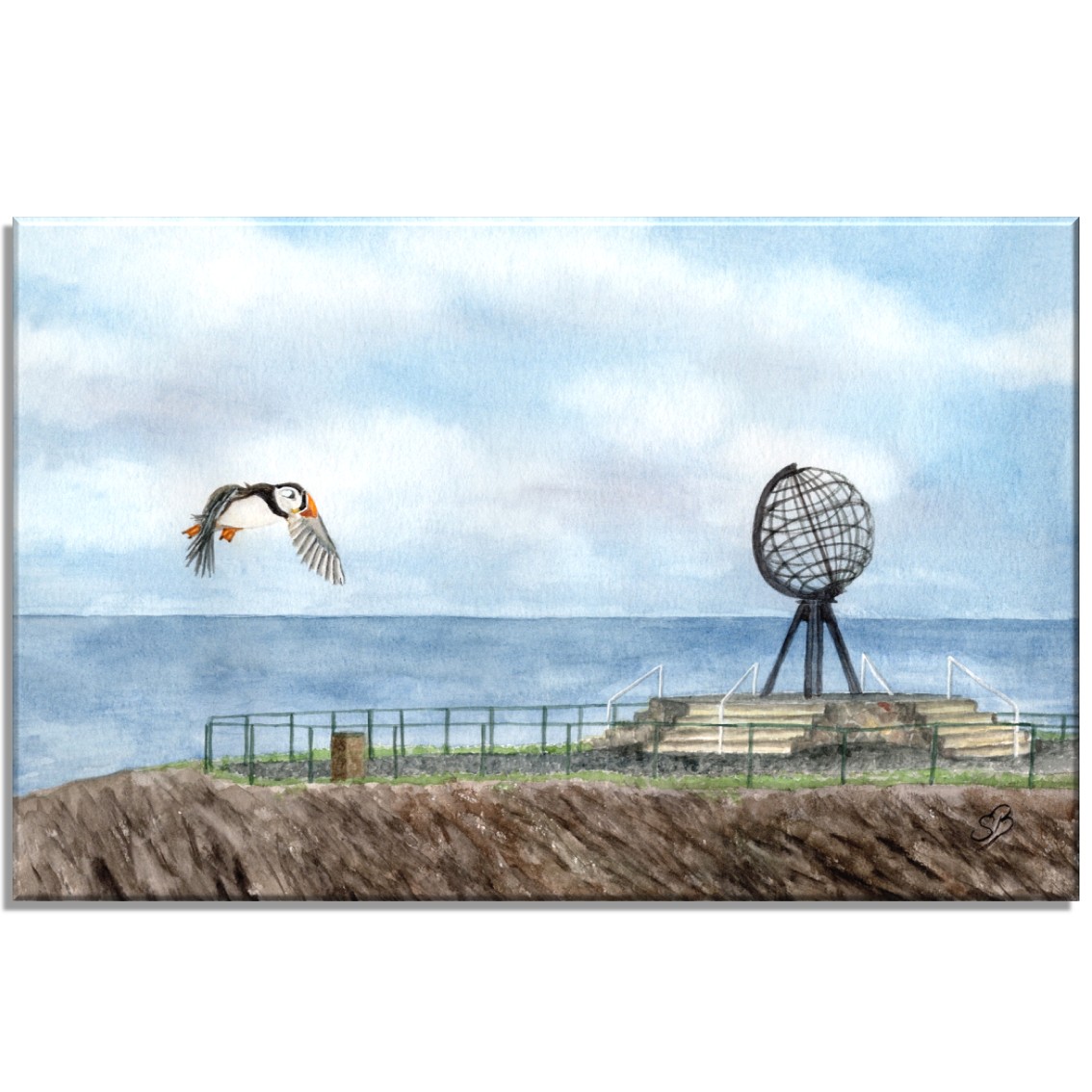 Leinwand 30 x 20 cm Keilrahmen Canvas-Leinen Aquarell Kunst Druck Kunstdruck Norwegen Norge Norway  Nordkapp Nordkap Globus Papageientaucher Puffin