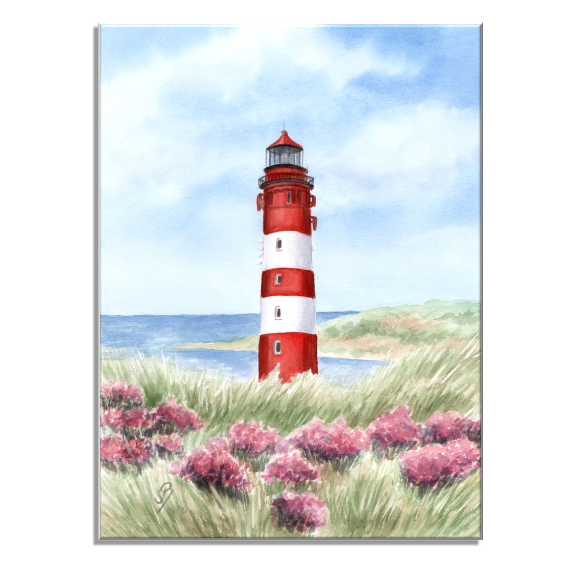 Leinwand 30 x 20 cm Keilrahmen Canvas-Leinen Aquarell Maritim Kunst Druck Kunstdruck Nordsee Amrum Leuchtturm Insel