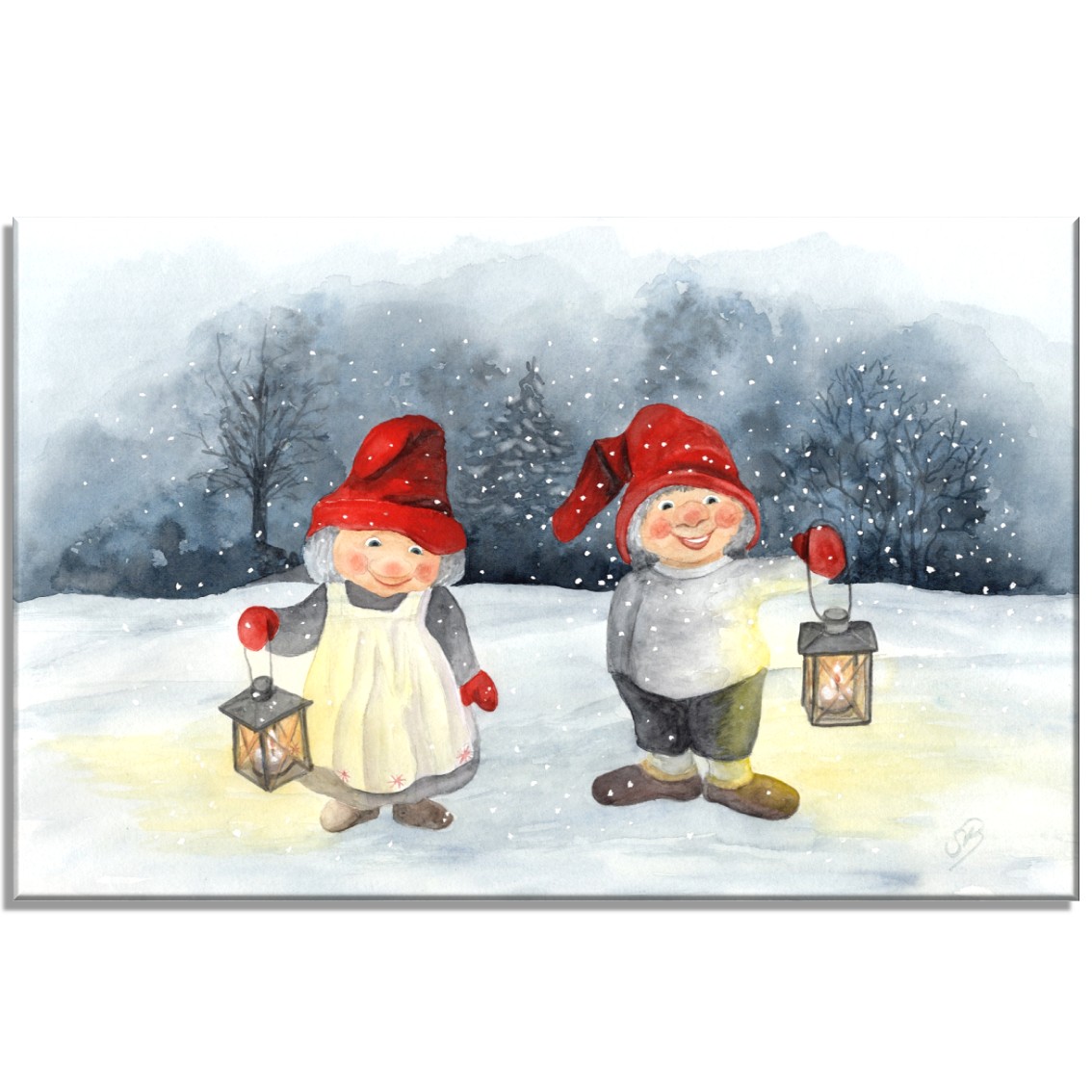 Leinwand 40 x 30 cm Keilrahmen Canvas-Leinen Aquarell Kunst Druck Kunstdruck Dänemark Danmark skandinavien - Weihnachten Winter Jul Nisse