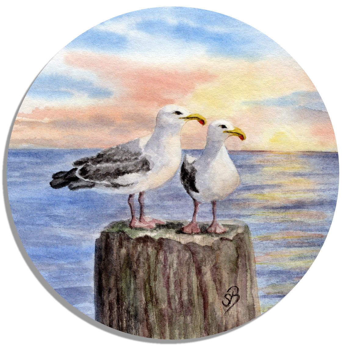 Untersetzer Glasuntersetzer rund 9,5 cm - Möwen auf Pfahl im Sonnenuntergang - AL3