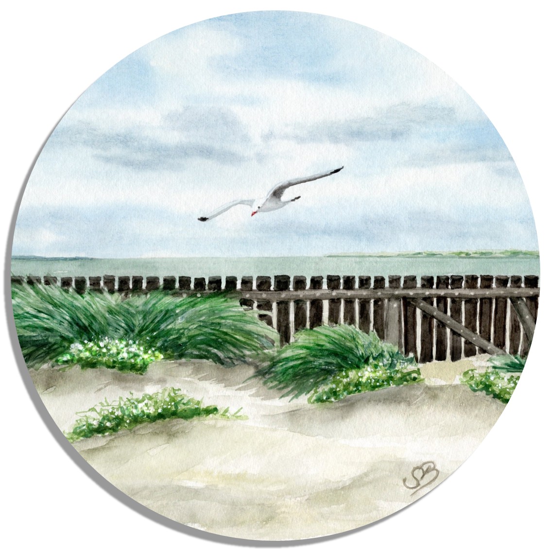 Untersetzer Glasuntersetzer rund 9,5 cm Aquarell Maritim Kunst Druck Kunstdruck Nordsee Insel Baltrum Strand Dünen Meer