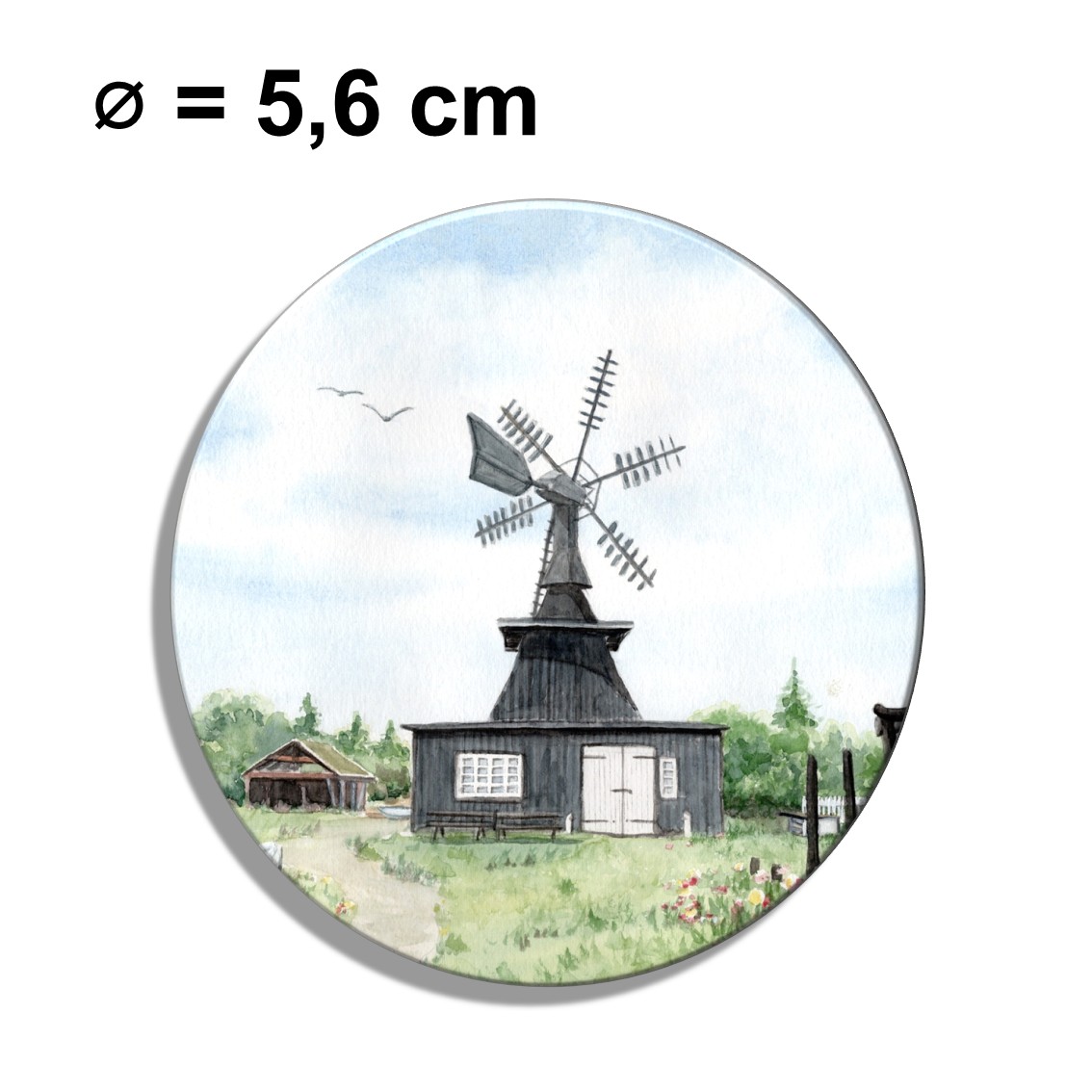 Mobile Preview: Fridge magnet with bottle opener watercolor maritime art print art print  Denmark Danmark - Nymindegab Mill - DK85